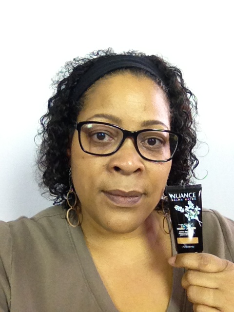 In the winter, I like to use a priming moisturizer before applying tinted moisturizer.  In the first photo, my face is clean.  I’ve used Laura Mercier’s Hydrating Foundation Primer in the second photo.  Click the link for a detailed review.  The primer is optional, but I use it to minimize the appearance of fine lines and even my dry, flaky winter skin.  In the third photo, I’ve groomed my brows and applied Salma Hayek’s Nuance brand Flawless Wear Tinted Moisturizer in Deep 265.  It provides the sheer finish I’m after for this no-makeup look.